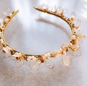 カチューシャ本体にはビーズを散りばめ、光を受けてきらりと輝きます。